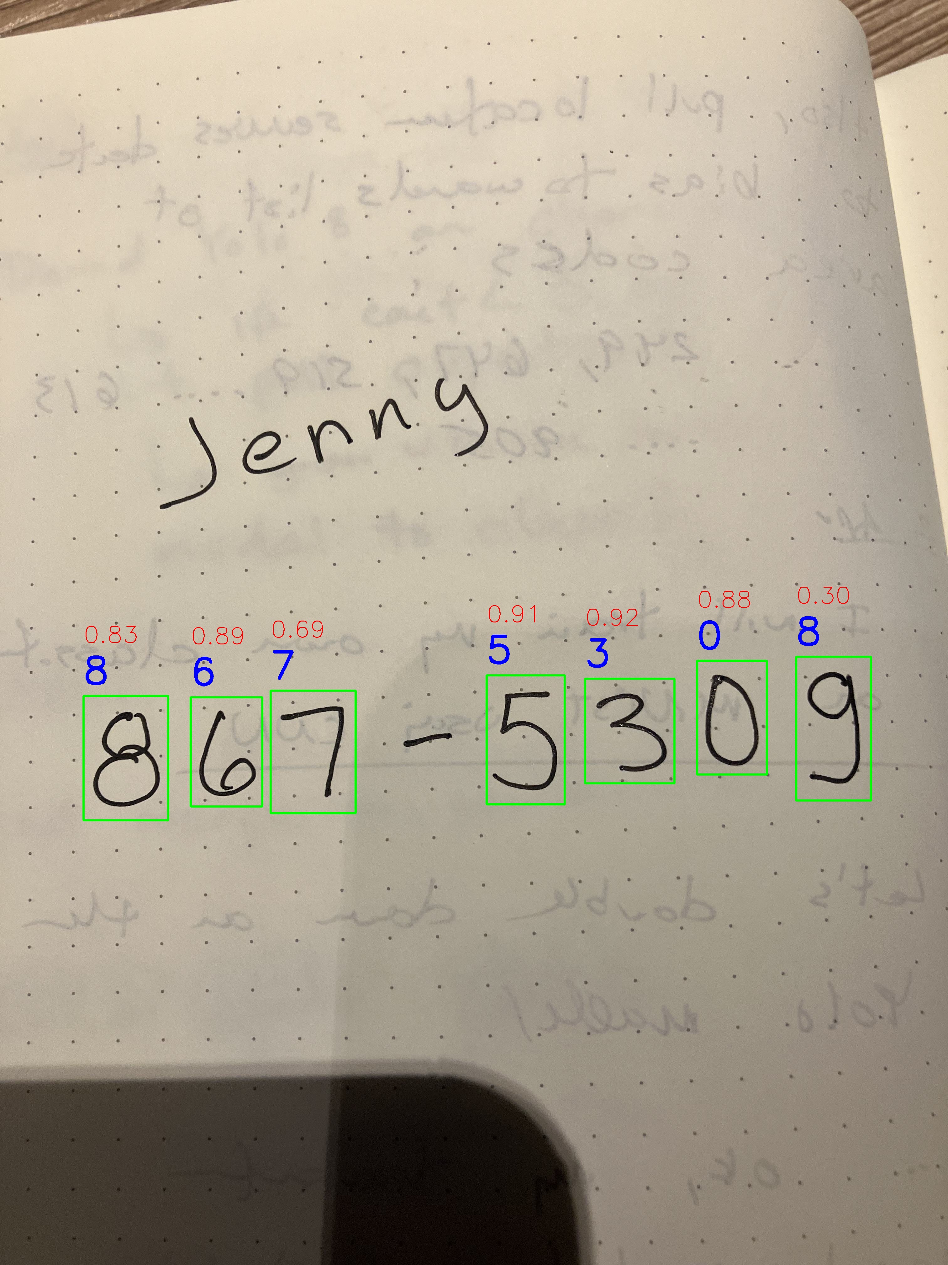 To filter out non-phone-number elements, I developed a custom post-processing technique that only returns digit groups that are closely spaced horizontally.